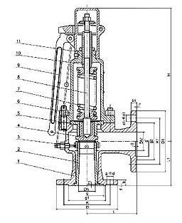 本閥門適用于工作溫度≤350℃的蒸汽、空氣等介質的設備或管路上。作為超壓保護裝置。連接法蘭標準按JB/T-94的系列1。
