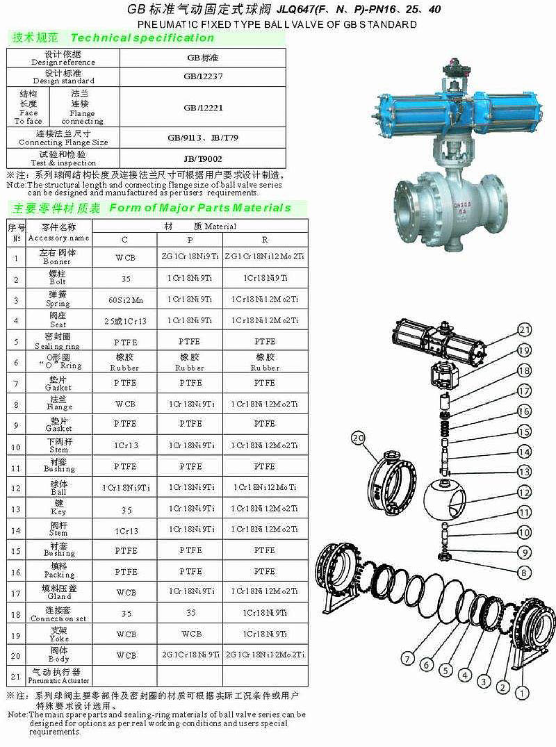 GB標準氣動固定式球閥JLQ647是我公司的優質產品之一,在上海GB標準氣動固定式球閥JLQ647廠家中享有極高的品質聲譽與服務評價.