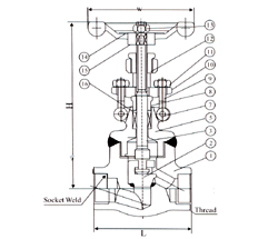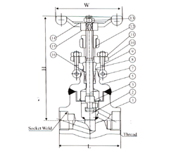 截止閥的設(shè)計與制造符合 APl602,BS53 52和ASME B16.34。檢驗與測試按APl598,標(biāo)記按MSS-SP-25。