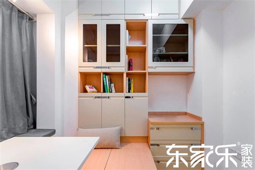 書房采用榻榻米設(shè)計(jì),既擁有一個(gè)安靜的辦公空間,家里有客人時(shí)還能作為臨時(shí)的客房使用。