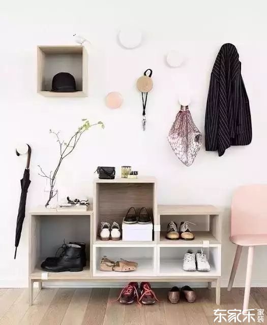 玄關(guān)不僅要考慮家人使用的實用性,在外裝飾方面也要下功夫。簡單的墻畫、漂亮的掛鉤都是一些小細節(jié)上的加分項。