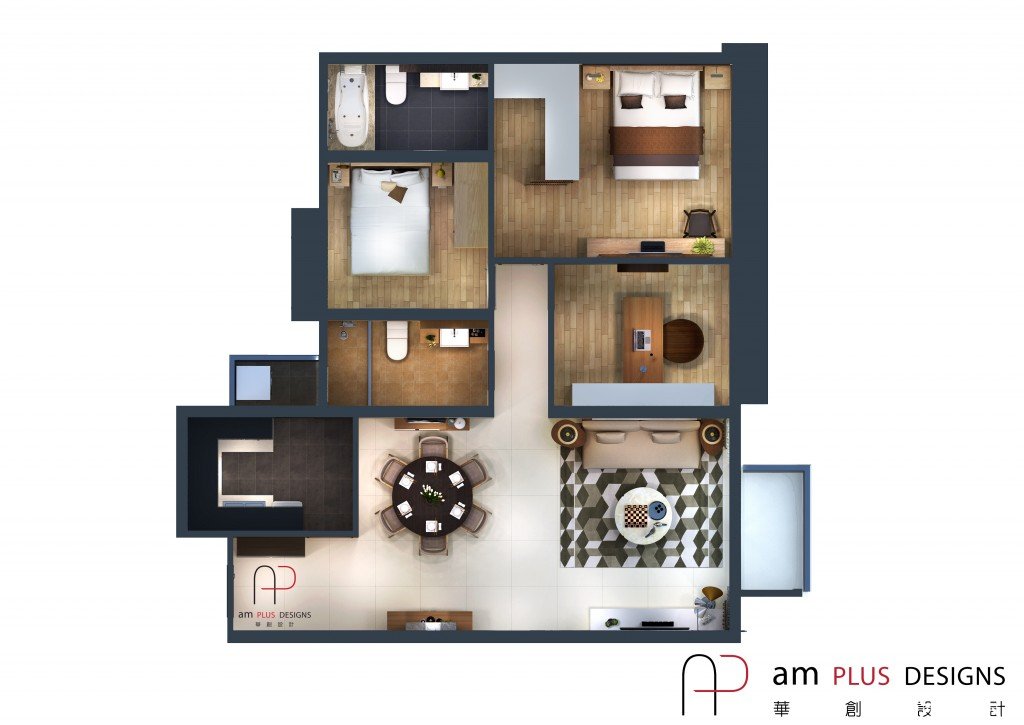 一般情況下,這樣3D Rendering配合其他平面/立面圖紙,已經(jīng)足夠表達設(shè)計效果及作討論之用,但如果客戶的設(shè)計時間相對寬松,間隔比較復(fù)雜的情況下,亦可增加3D Floor Plan作額外的輔助展示。