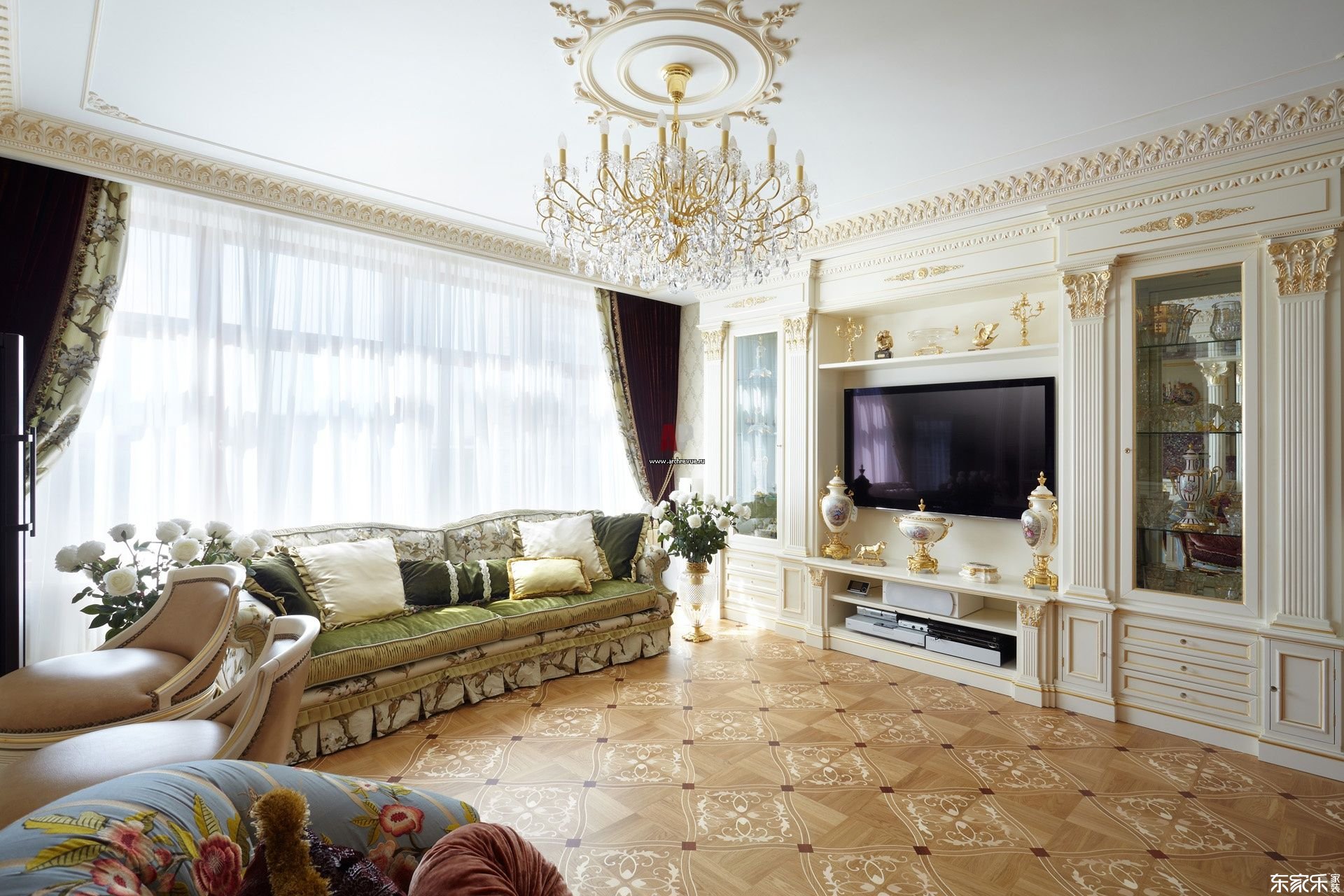 古典風格的天花板通常是白色的,裝飾有灰泥頭飾。