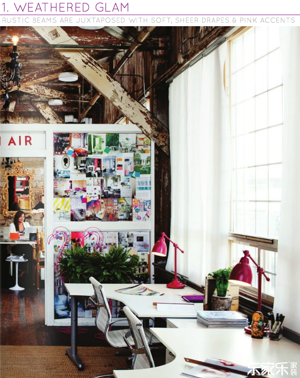 當(dāng)談到我們工作的空間時,我認(rèn)為有三個關(guān)鍵因素:任務(wù)和情緒照明的選擇,靈感,個人環(huán)境和實用,舒適的家具。這三個空間中的每一個都有三個元素,但以不同的方式執(zhí)行它們。首先,Weathered Glam辦公室(Bazaar先生的愛好!)使用柔軟,純粹的窗簾和白色家具,這樣角色包裝的橫梁仍然是空間的特色。我喜歡吊燈和粉紅色口音的戲劇。第二個空間Loft Chic則是精致的灰色色調(diào)和簡約家具。這些窗戶為這個空間帶來了兩個最重要的元素:自然光和那個視圖。最后的空間展示了如何使用色彩來增加空白畫布的趣味性 - 不要害怕將舊的和新的混合在一起,為該方案帶來新的變化。人們最喜歡哪個空間?